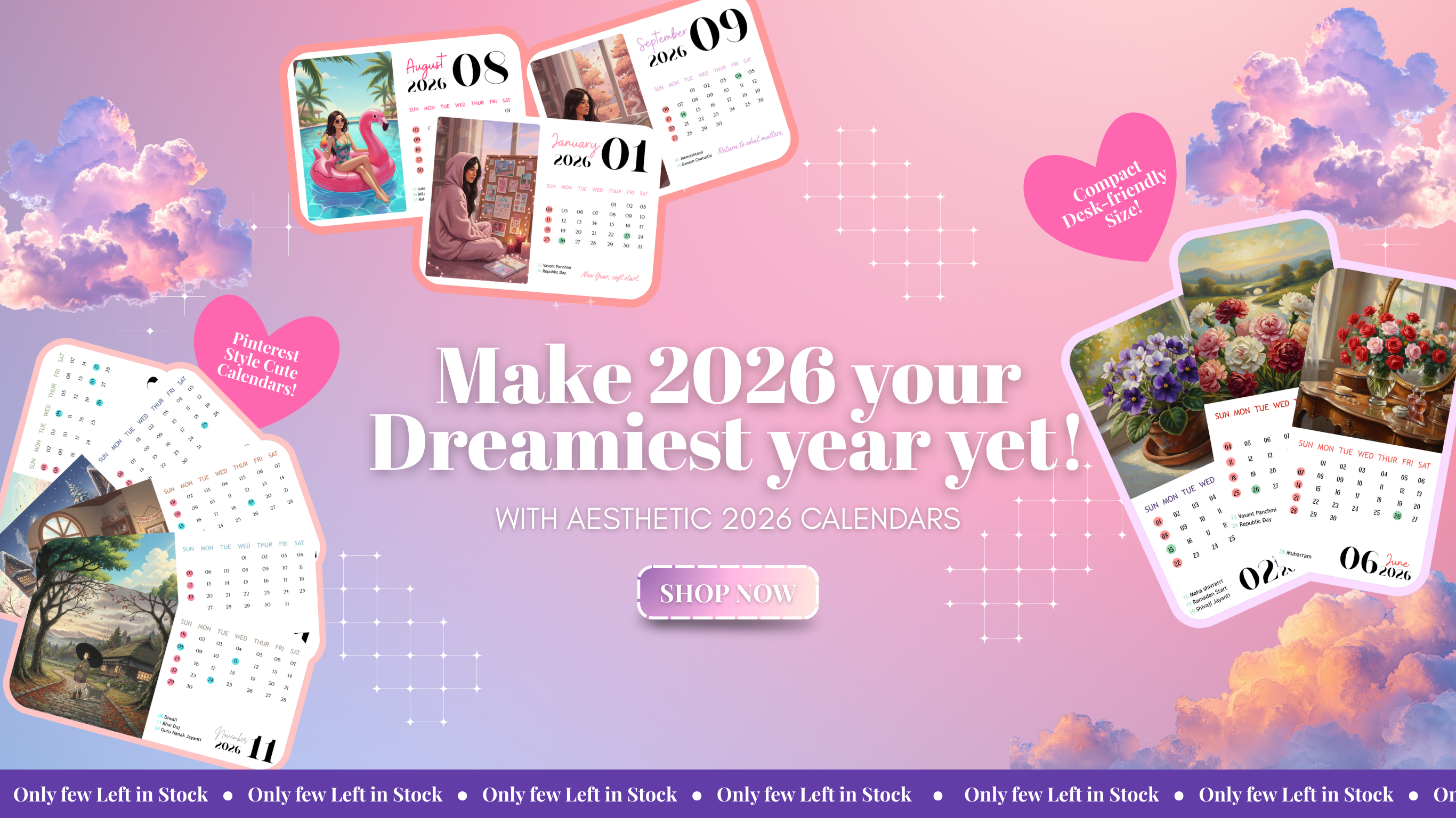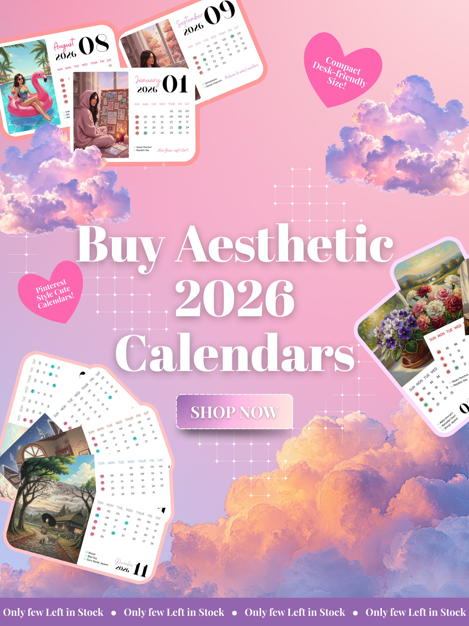 Thoughtful layout featuring all major Indian Festivals and Holidays.