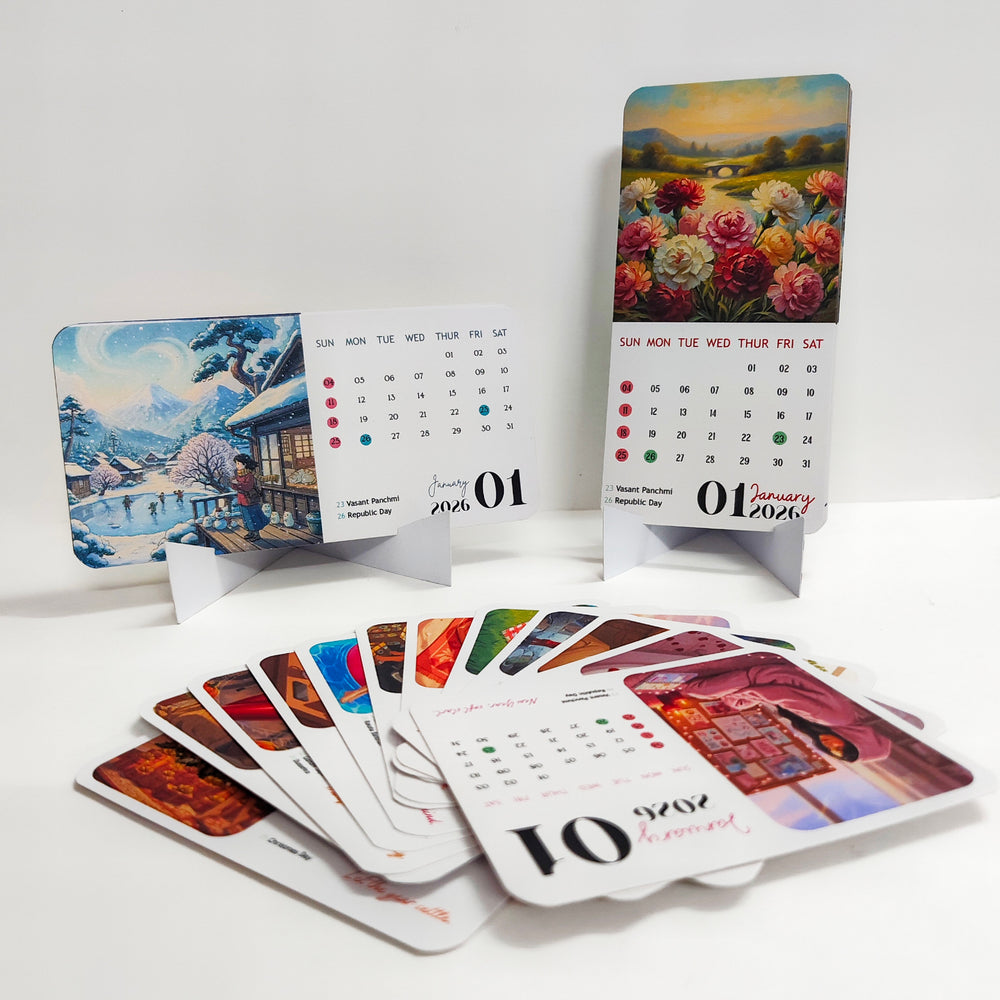 12 Months. 12 Moods. Beautiful art to lift your spirits all year round. Watch the magic unfold as our calendars feature 12 mood-lifting illustrations, one for every month, designed to light up your desk and your day.