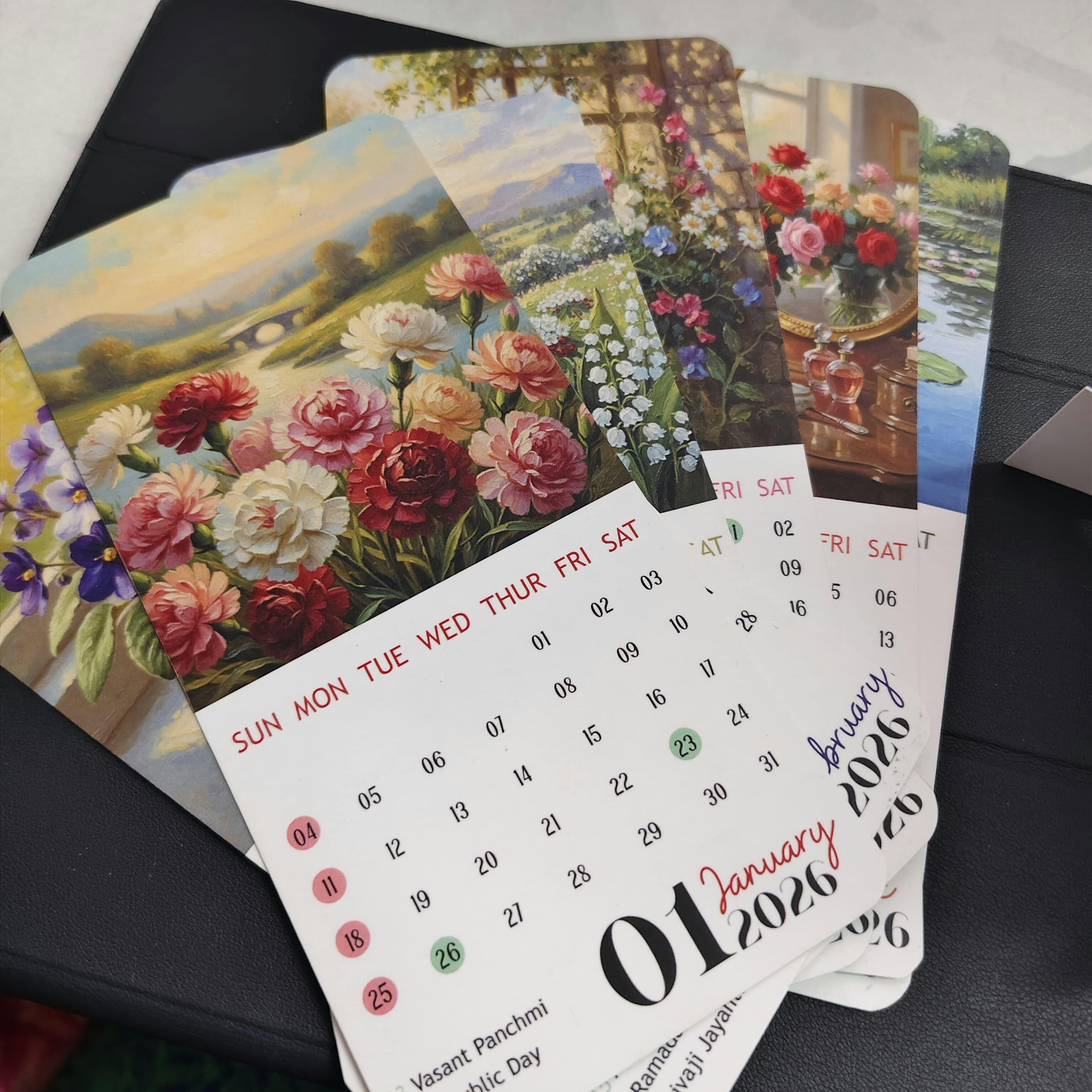 A botanical journey through the year.This slim vertical calendar features 12 oil-painting style illustrations of the specific birth flower that blooms in each month—from January Carnations to December Holly.Printed on premium 300 GSM cardstock,the artwork is designed to be cut out and reused as luxury gift tags or square wall prints.
