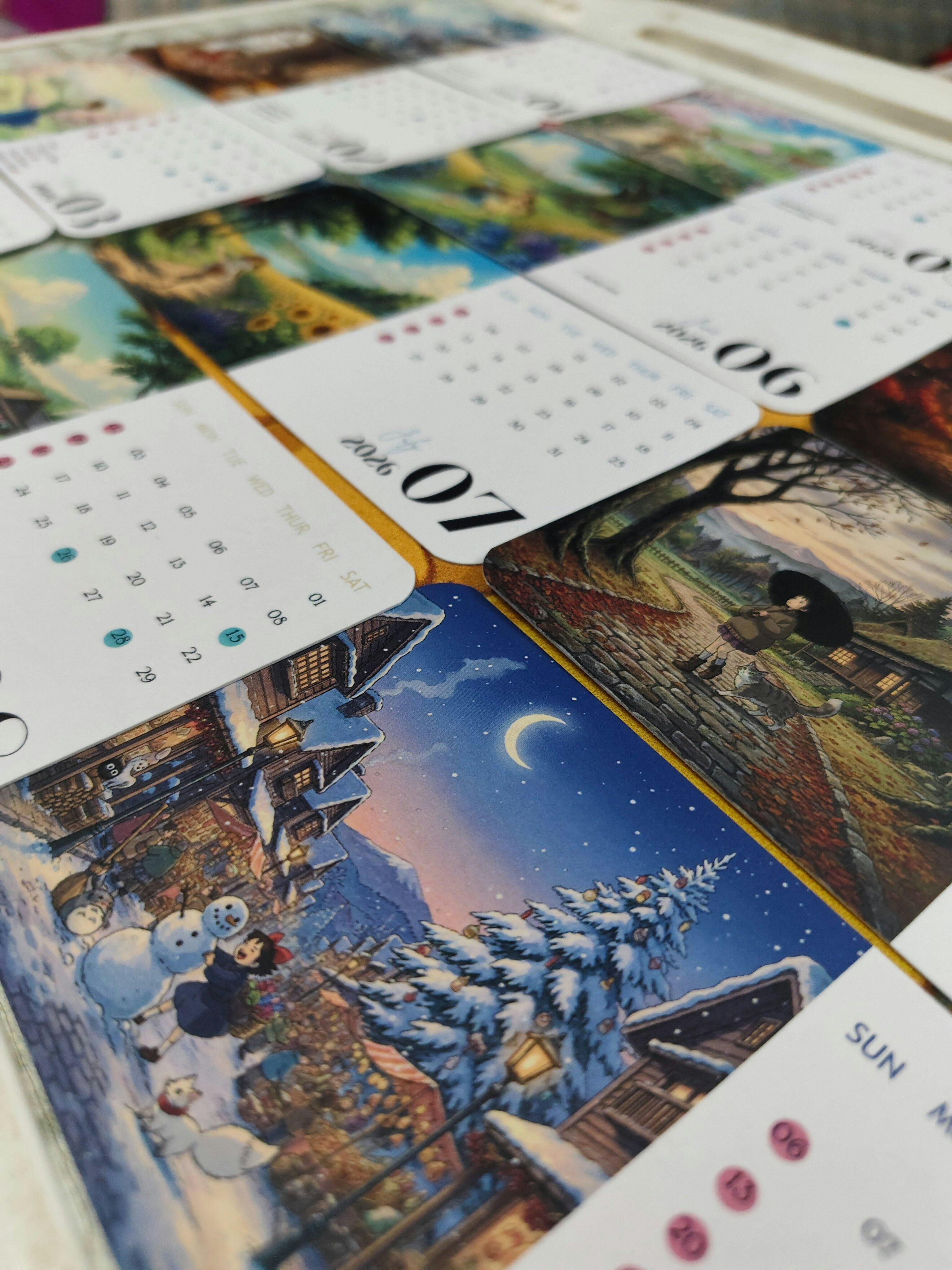 This isn't just a calendar; it’s a desk sanctuary. Featuring 12 soothing, Studio Ghibli-inspired illustrations—from cozy winter cabins to sun-drenched meadows.