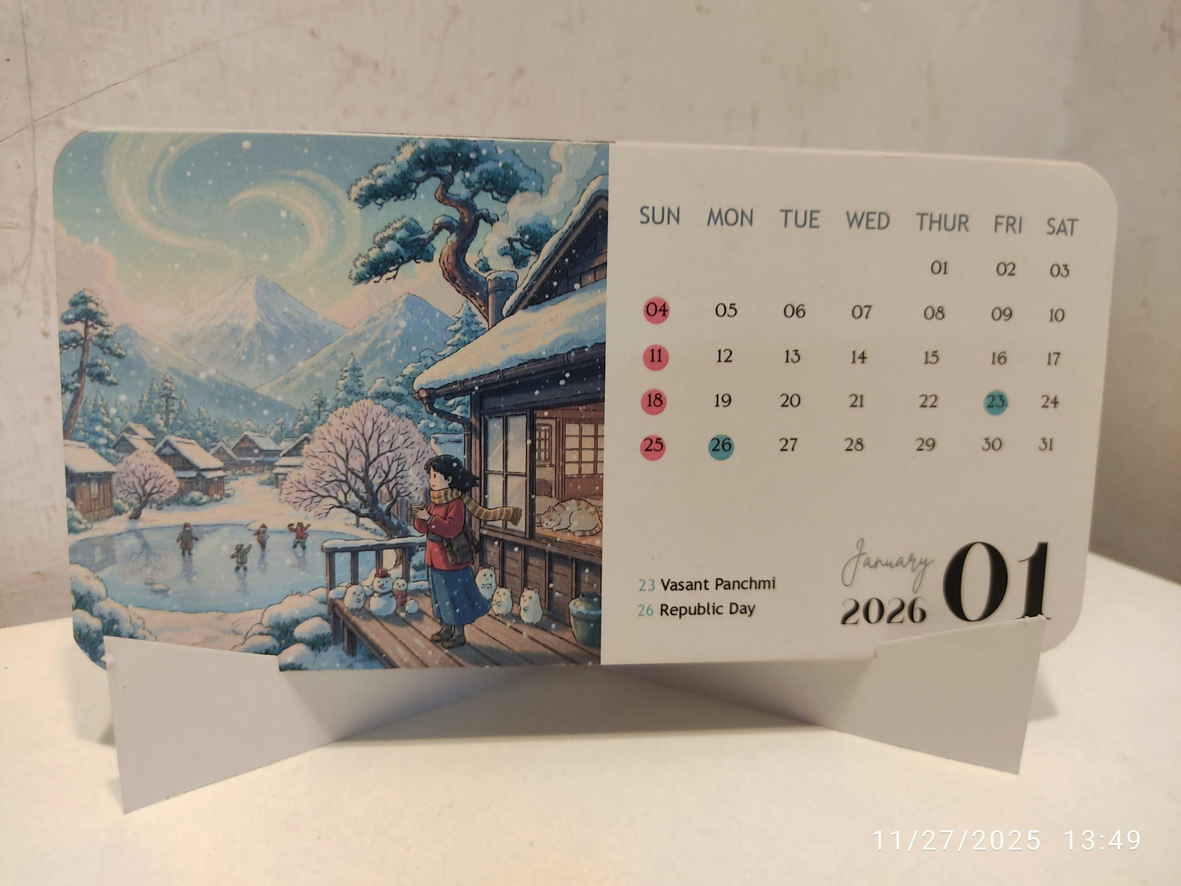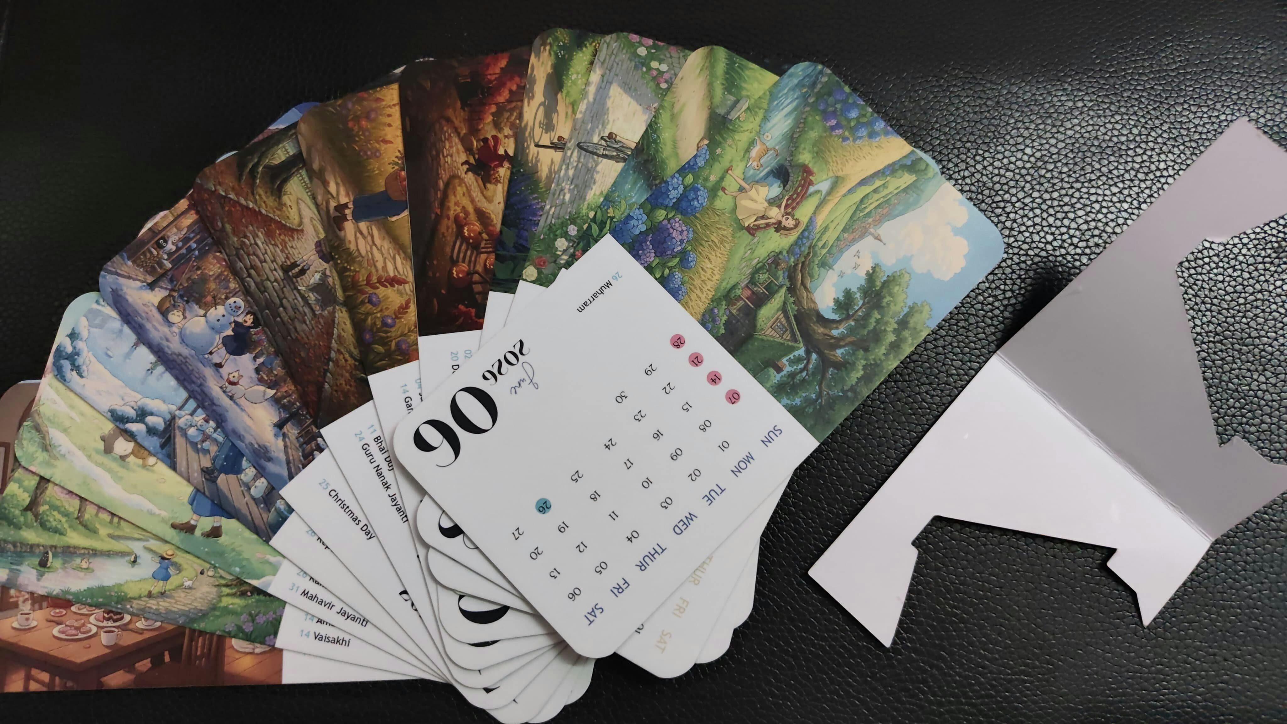 Includes: 12 Monthly Cards + Foldable Desk Stand.